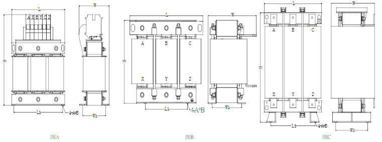 回馈电抗器参数及尺寸表,系统电压 3-AC1140V,铜,绝缘等级:H 级 |