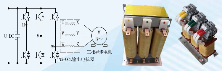 三相输出电抗器(又叫出线电抗器)安装在变频器输出侧,主要作用是补偿长线分布电容的影响,并能抑制开关频率纹波电流衍生的高次谐波电流输出,提高输出高频阻抗,有效抑制dv/dt.减低高频漏电流,起到保护变频器,减小设备损耗及噪声,保护电机绝缘的作用。