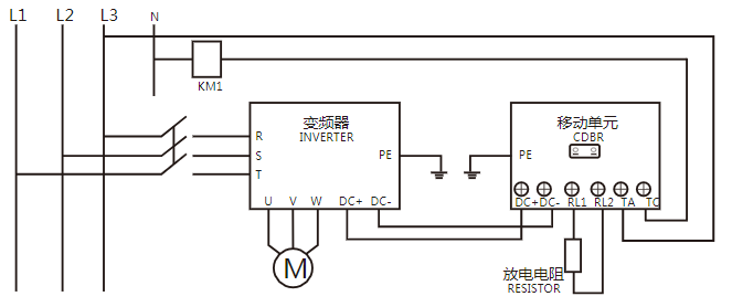 ■ 制动单元与变频器间的接线如下图所示